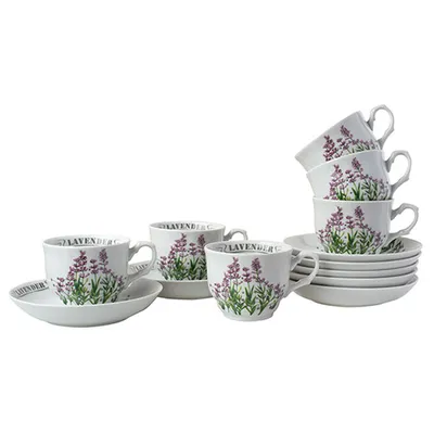 Чайная пара «Лаванда» набор[6шт] фарфор 250мл D=15см белый