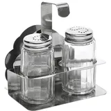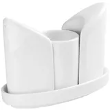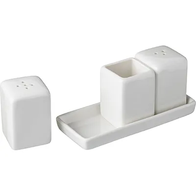 Набор для специй на подставке «Кунстверк» — простой набор в классической форме. Включает три предмета — это стандартные солонка и перечница, а также небольшой стаканчик для зубочисток.