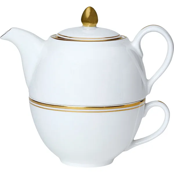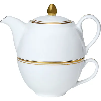 Набор посуды «Беништ Голд» чайник, чашка и блюдце[3шт] кост.фарф. белый,золотой