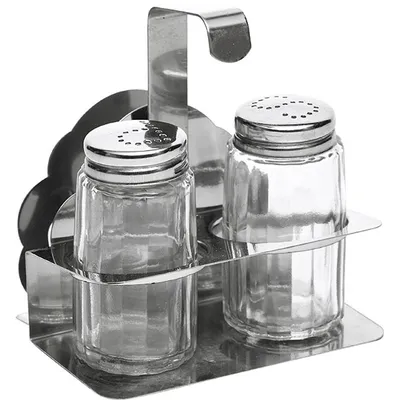 Набор для специй солонка, перечница, салфетница сталь нерж.,стекло 50мл ,H=90,L=100,B=75мм серебрист