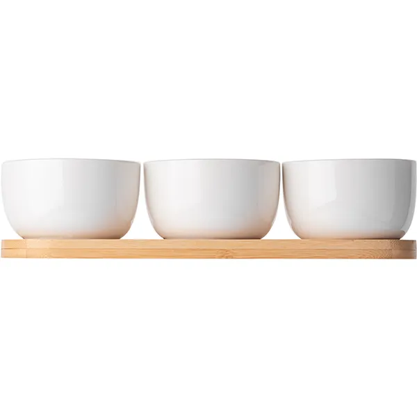 Набор соусников на подставке[3шт] бамбук,фарфор 225мл ,L=31,B=10см