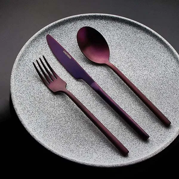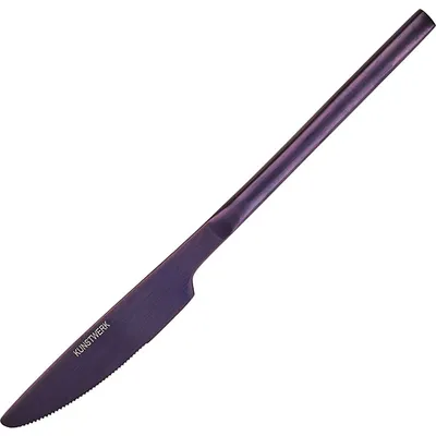 Нож «Саппоро бэйсик» от бренда Kunstwerk – надежный столовый прибор. Выделяется приятным оттенком фиолетового цвета и матовой поверхностью, что придает изделию из нержавеющей стали стильный современный вид.