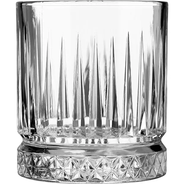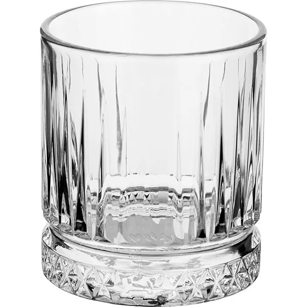 «Элизия» турецкого бренда Pasabahce привлекает внимание двухуровневой композицией декора. Верхняя часть украшена изящными вертикальными гранями, которые устремляются вверх словно колонны античного храма. Нижняя часть – массивное основание с богатым узором из мелких граней. Обеспечивает устойчивость и преломляет свет. Этот контраст между строгими вертикальными линиями и сложной геометрией дна выделяет стакан среди простых олд фэшн. Эта «Элизия» достойна самых торжественных моментов.