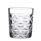 Стакан производится из качественного прозрачного стекла. Его дно толстое для длительного охлаждения напитков. Впечатляет дизайн посуды – дно оформлено ромбовидным орнаментом, от которого вытягиваются по стенкам стильные стрелы. Это придает посуде особое очарование, так как грани в свете ламп привлекательно играют, переливаются, заставляя напитки очаровывать особенным цветом.