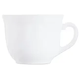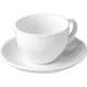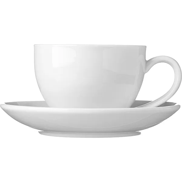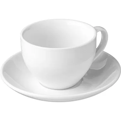 Набор состоит из чашки и блюдца. Объем кружки 200 мл, высота ее 70 мм, а диаметр по верху 88 мм. У блюдца идеальная ровная форма, диаметр равен 140 мм. Товар в белом цвете выполнен из качественного фарфора. Материал красивый сам по себе, поэтому чайная пара не дополнена декорами, чтобы не испортить общее впечатление о дизайне сервиза.
