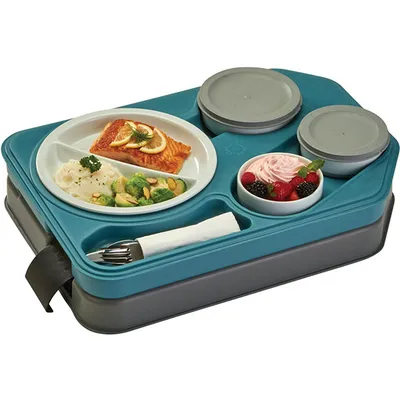 Поднос теплоизолированный пластик ,H=10,5,L=53,B=37см бирюз.,серый
