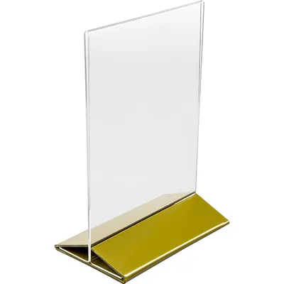 Подставка наст. д/меню А5 золот.осн. пластик ,H=220,L=155,B=95мм прозр.,золотой