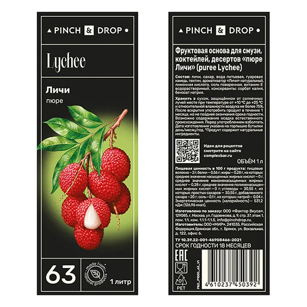 Пюре «Личи» фруктовое Pinch&Drop пластик 1л D=7,H=26см