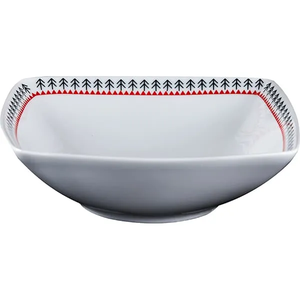 Салатник «Мезень» Принц Веточка квадратный фарфор 300мл ,H=45,L=145,B=145мм белый,красный