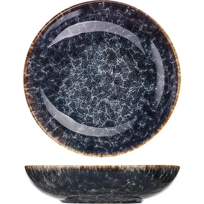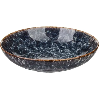 Салатник «Стоун» бренда Kunstwerk – это элегантная посуда из качественного фарфора, сочетающая современный дизайн и функциональность. Его поверхность украшена глазурованным покрытием с эффектом мраморных прожилок на сине-сером фоне, дополненным контрастным коричневым ободком. Дизайн имитирует текстуру натурального камня, что делает салатник стильным акцентом в сервировке.