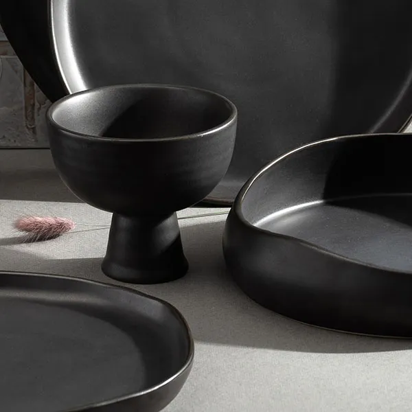Салатник «Шейд» бренда Kunstwerk – это минималистичная керамическая чаша объемом 1 литр с выразительной асимметричной формой. Волнистые края и витиеватые стенки создают современный скульптурный силуэт, который привлекает внимание даже без декора. Глубокий матово-черный цвет подчеркивает фактуру керамики и создает эффектный контраст с любыми блюдами.