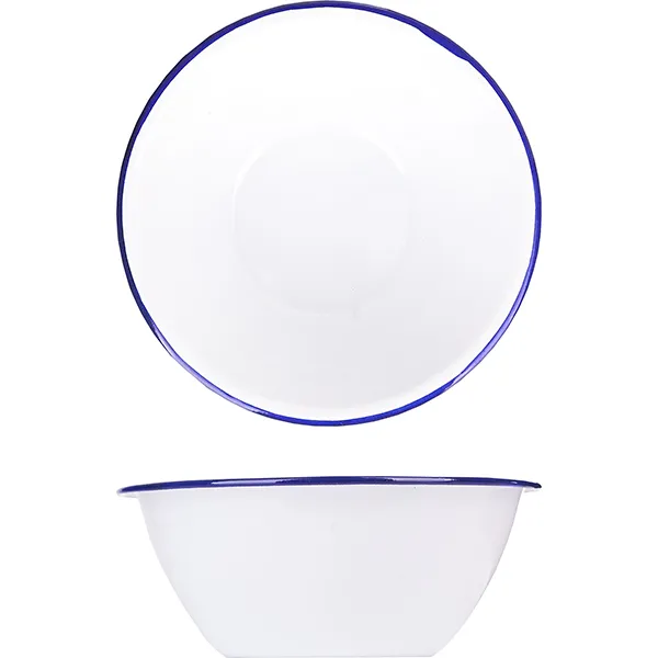 Белый эмалированный салатник Prohotel подходит для использования в ресторанах, кафе и других заведениях общественного питания. Он уместен для сервировки салатов, закусок или десертов.