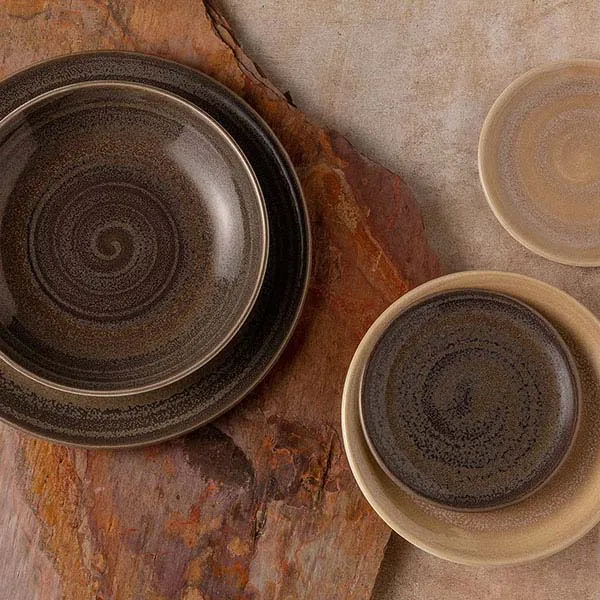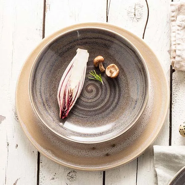 Салатник «Революшн» фарфор 0,65л D=205,H=40мм серый,коричнев.
