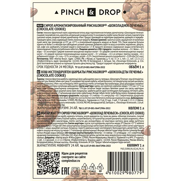 Сироп «Шоколадное печенье» Pinch&Drop стекло 1л D=85,H=330мм