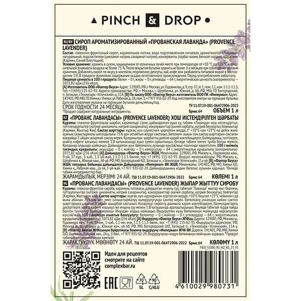 Производитель использует только натуральные компоненты. Производство ведется в соответствии с отечественными стандартами. В итоге клиенты получают великолепный товар с насыщенным вкусом и потрясающим ароматом. Pinch&Drop работает для того, чтобы ваши любимые напитки, десерты и кофе раскрывались новыми вкусами.
