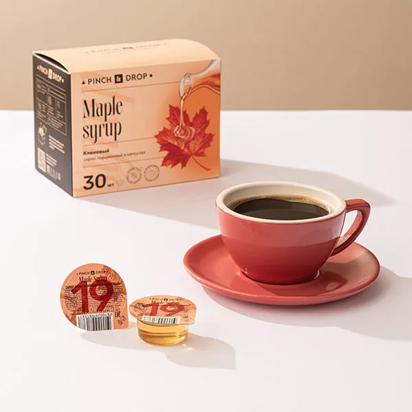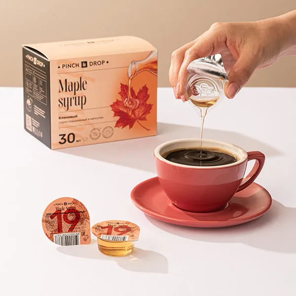 Сироп «Кленовый» в порционных упаковках — идеальный вариант для кофеен и баров, где каждый клиент получает возможность выбрать сироп на свой вкус.