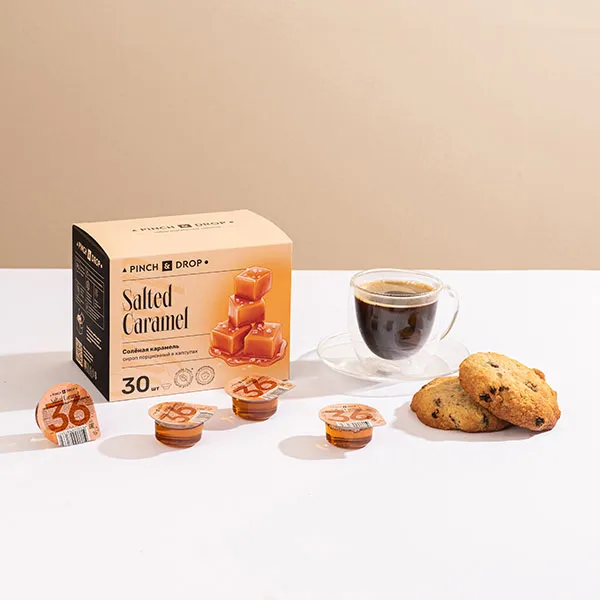 Производитель использует только натуральные компоненты. Производство ведется в соответствии с отечественными стандартами. В итоге клиенты получают великолепный товар с насыщенным вкусом и потрясающим ароматом. Pinch&Drop работает для того, чтобы ваши любимые напитки, десерты и кофе раскрывались новыми вкусами.