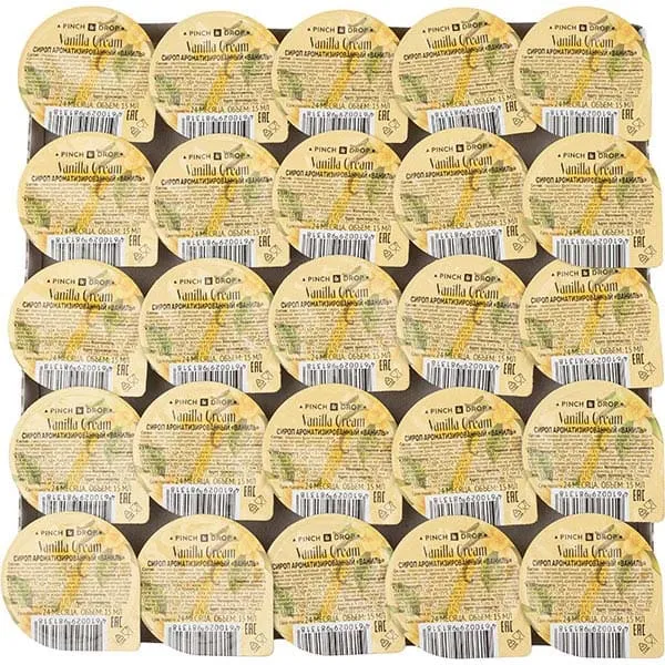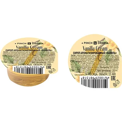 Сироп «Ваниль» ароматизированный порционный Pinch&Drop на подложке[50шт] поливинилхл. 15мл D=45,H=45