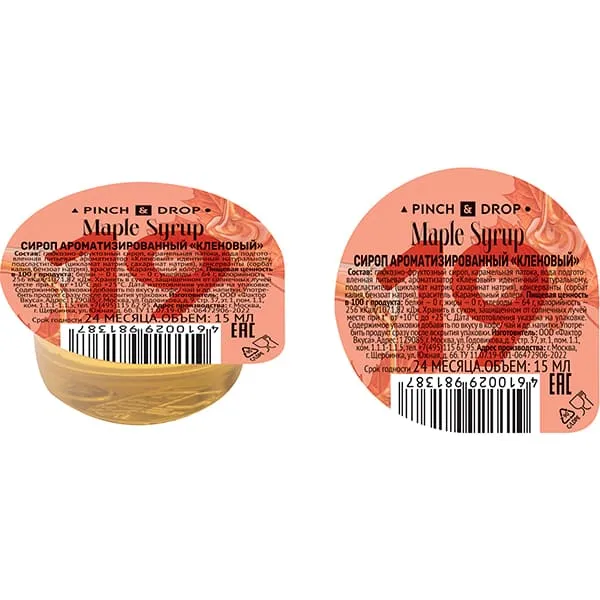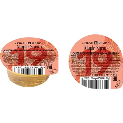 Сироп «Кленовый» ароматизированный порционный Pinch&Drop на подложке[50шт] поливинилхл. 15мл D=45,H=