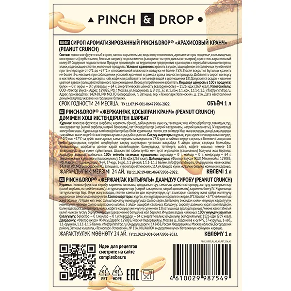 Сироп «Арахисовый кранч» Pinch&Drop пластик 1л D=81,H=301мм
