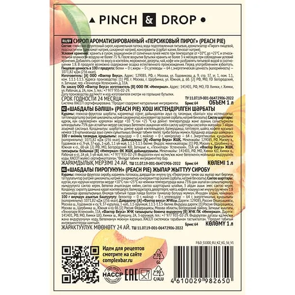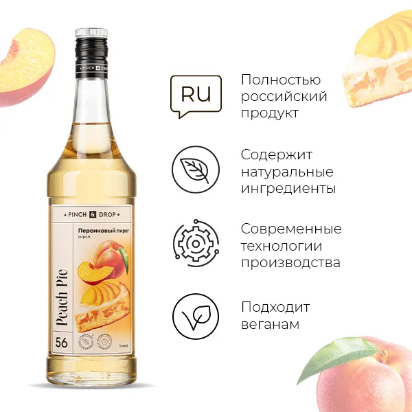 Сироп «Персиковый Пирог» Pinch&Drop стекло 1л D=85,H=330мм