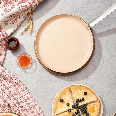 Сковорода для блинов алюмин.,керамика D=28,H=2,L=49см коричнев.,бежев.