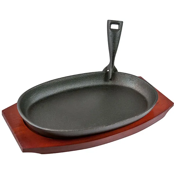 Сковорода для фахитос на подставке чугун,дерево ,H=45,L=320/275,B=190мм черный,древесн. арт. 04020711