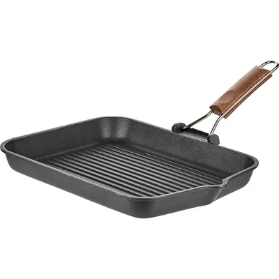 Сковорода-гриль алюм.литой,дерево ,H=40,L=270/430,B=345мм черный