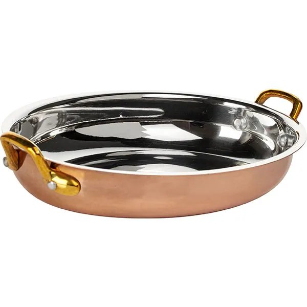 Сковорода сервировочная овал. 2 ручки сталь нерж.,медь ,H=45,L=250,B=180мм медный,металлич.