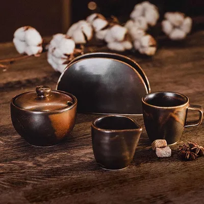 Сливочник «Мак» фарфор 90мл ,H=60,L=70,B=58мм медный