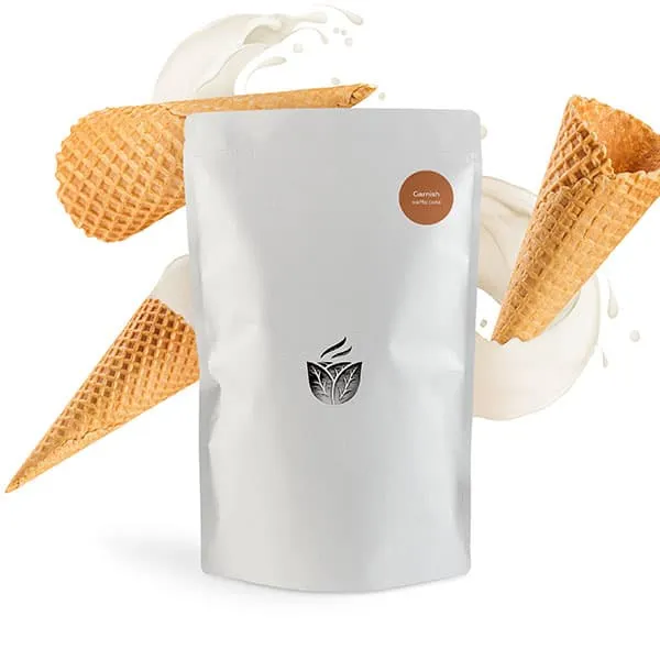 Сухая смесь «Вафельный рожок» на основе сахарной пудры предназначена для декорирования напитков. Дополнительные ингредиенты в составе наделяют продукт насыщенным ароматом вафли.