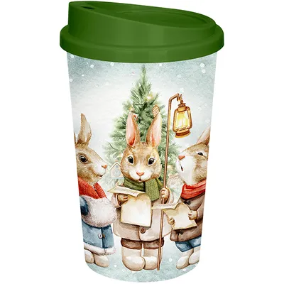 Стакан для горячих напитков «Зайки» с крышкой полипроп. 400мл зелен.