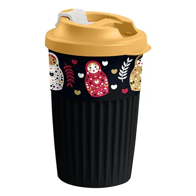 Стакан для горячих напитков «Матрешки» с клапаном полипроп. 450мл D=92,H=147мм черный,желт.