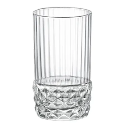 Стопка «Америка 20х» итальянского бренда Bormioli Rocco изготовлена из прозрачного стекла. Ее вместимость 80 мл соответствует увеличенному формату для крепких напитков и шотов. Высота изделия – 80 мм при диаметре 45 мм. Форма сочетает минимализм и сложный декор: верхняя часть оформлена частыми вертикальными гранями, нижняя – узором в виде ромбов, напоминающим огранку алмаза. Такая обработка усиливает блеск и игру света. Материал обладает высокой твердостью. Толщина стенок обеспечивает ощущение солидности. Гладкие края безопасны для использования.