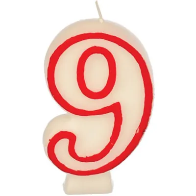Свеча-цифра ко дню рождения «9» воск ,H=16,L=144/74,B=84мм белый,красный
