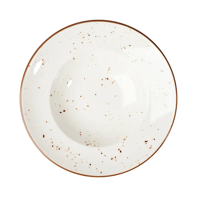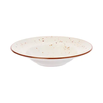 Классический сливочно-белый цвет с деликатным коричневым кантом и натуральными крапинками придает изделию теплый, уютный характер. Диаметр 27 см и объем 400 мл делают эту тарелку идеальной для подачи пасты и других блюд с соусом.