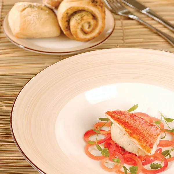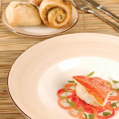 Тарелка для пасты «Чино» фарфор 495мл D=300,H=65мм белый,бежев.