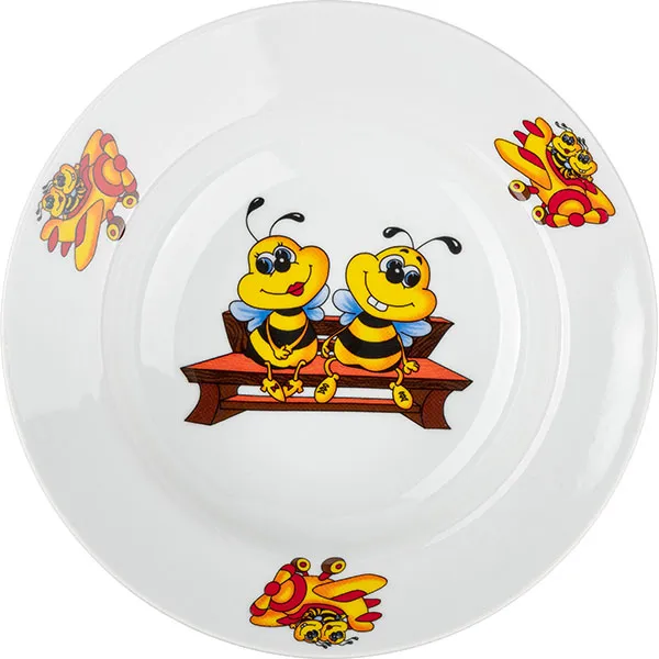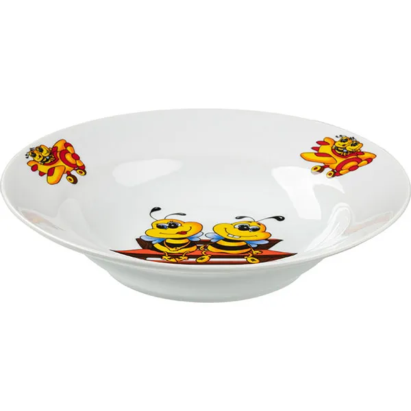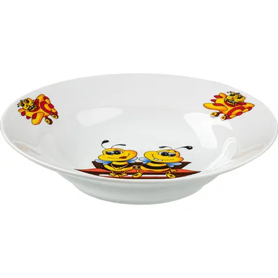 Тарелка глубокая «Пчелы» детская фарфор D=20см белый