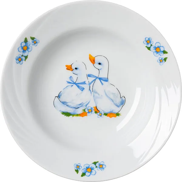 Тарелка глубокая «Гусята» детская фарфор 250мл D=200,H=43мм белый