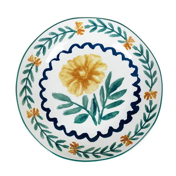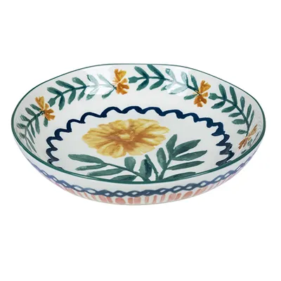 Тарелка глубокая «Луга» Цветок керамика 0,7л D=215,H=43мм белый,разноцветн.
