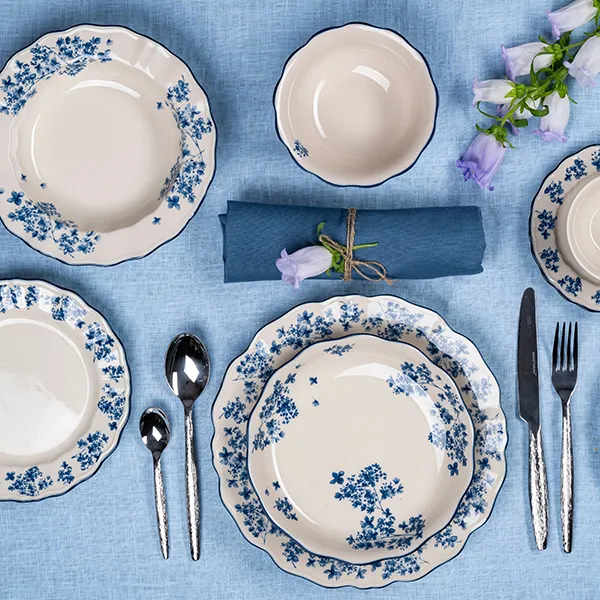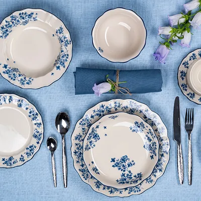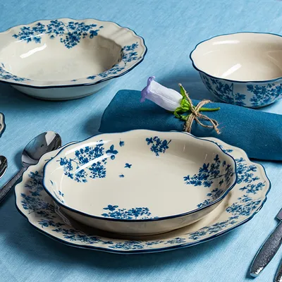 Тарелка глубокая «Фиори» фарфор 400мл D=220,H=45мм слон.кость,синий