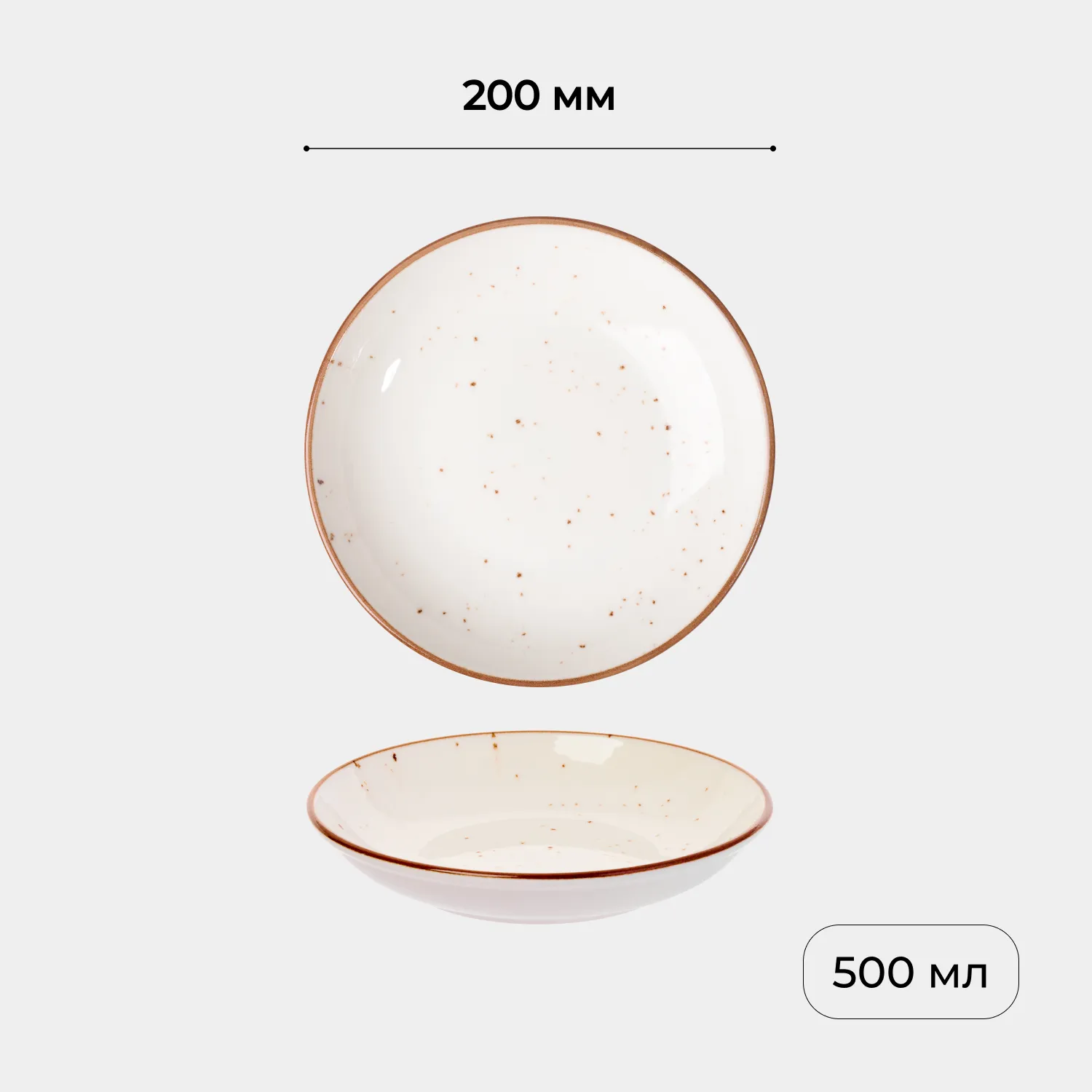 Глубокая тарелка «Париж» бренда Kunstwerk сочетает эстетику минимализма с профессиональной функциональностью. Классический сливочно-белый цвет с теплым коричневым кантом и легкими крапинками придает изделию благородный вид. Объем 0,5 л и диаметр 20 см делают эту посуду универсальной: подходит для разных задач – от подачи супов до салатов и десертов.