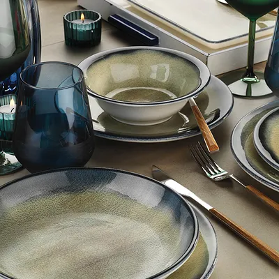Тарелка глубокая «Нанокрем Дарк Блю» фарфор D=210,H=38мм тем.син.,зелен.