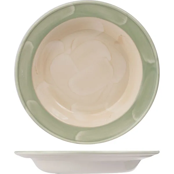 Тарелка глубокая «Феннель» фарфор 380мл D=215,H=30мм зелен.,бежев.