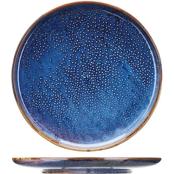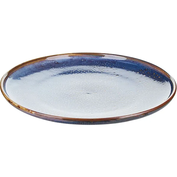 Среди изделий – круглая плоская тарелка диаметром 29 см. Ее края обрамлены коричневой окантовкой, внутренняя поверхность усеяна светлыми вкраплениями. Это изящное изделие предназначено для подачи вторых блюд и презентации порционных закусок. Впишется в любой стиль сервировки и станет украшением праздничного стола.