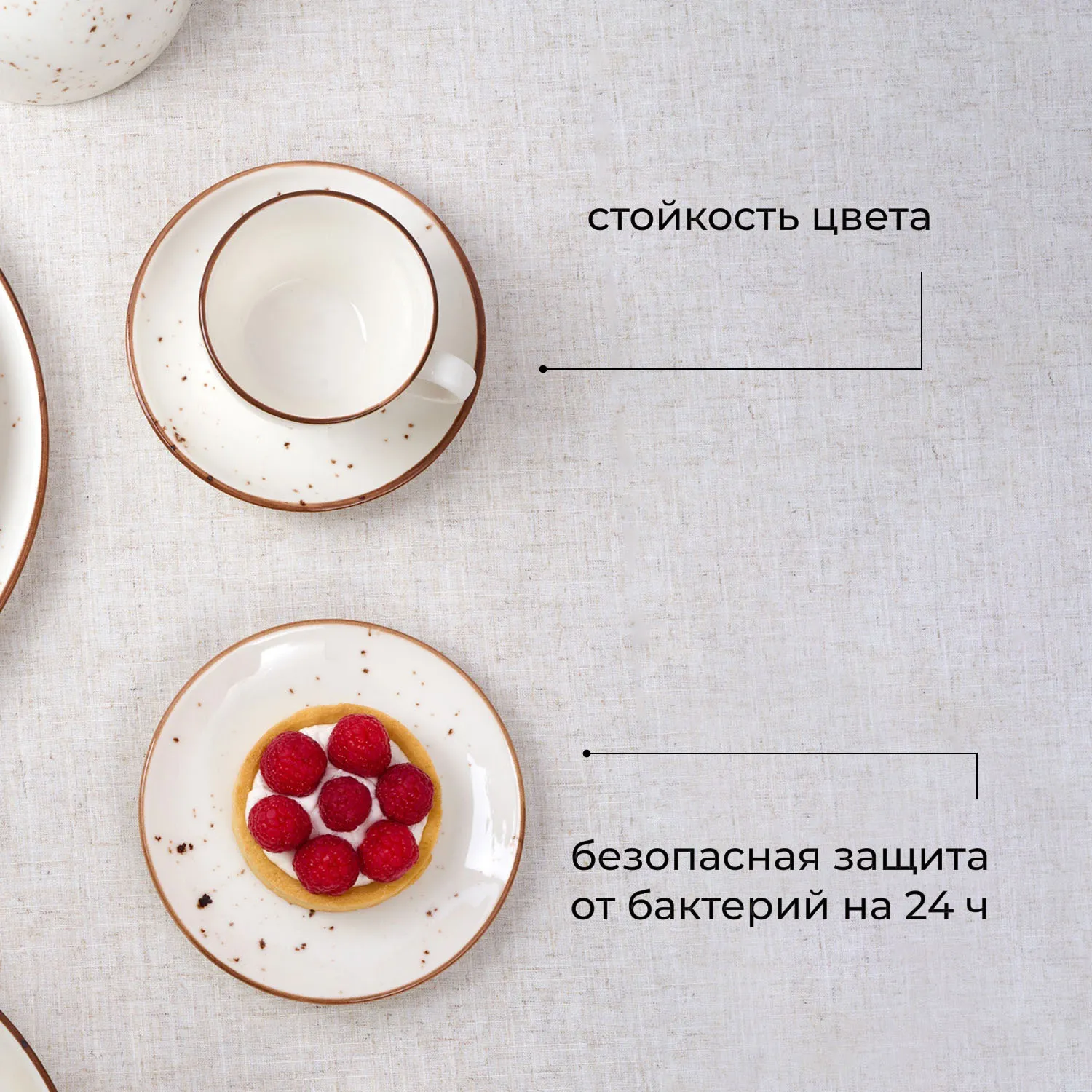 Диаметр 15 см делает тарелку универсальным решением. Изделие изготовлено из плотного фарфора. Примененная при производстве технология Hydro Zero™ Inside обеспечивает структурную целостность и устойчивость изделия к сколам, сохраняя безупречный вид даже после множества циклов использования. Также применена антибактериальная технология HyGenie™ Inside, которая создает антимикробную защиту на поверхности, чтобы посуда отвечала строгим стандартам гигиены.