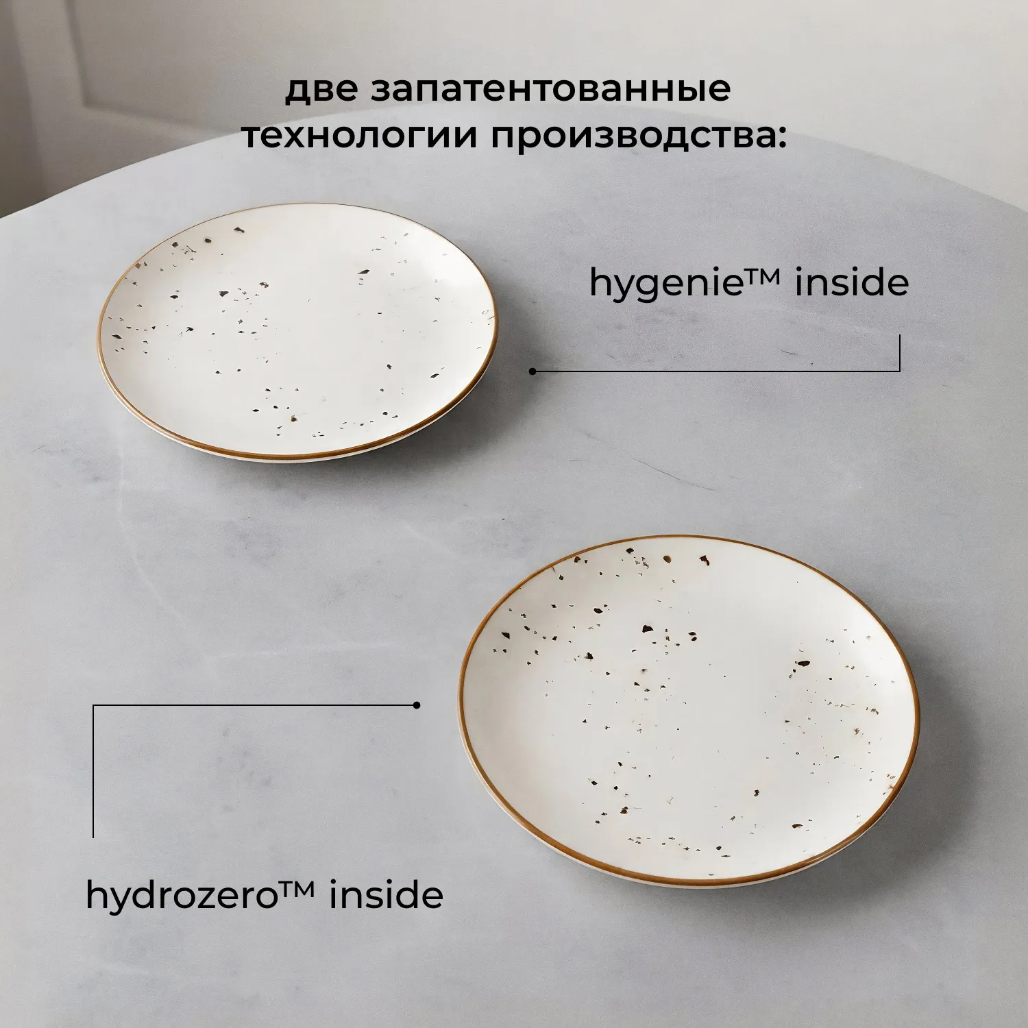 Изделие изготовлено из высокоплотного фарфора, отличающегося прочностью и стойкостью к термическим нагрузкам. Технология Hydro Zero™ Inside обеспечивает материалу повышенную устойчивость к сколам и механическим повреждениям. Технология HyGenie™ Inside предоставляет поверхности антибактериальную защиту.