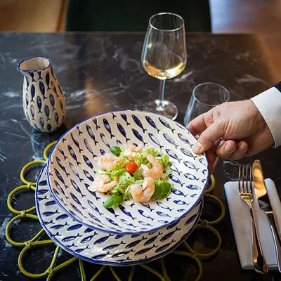 Тарелка «Талассиос» мелкая керамика D=290,H=35мм бежев.,синий