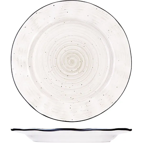 Серия мелких тарелок «Пастораль» – это посуда с оригинальным современным дизайном. Тарелки сделаны из фарфора высокого качества, посуда отличается долговечностью и прочностью. Края тарелки устойчивы к образованию сколов. Глянцевая глазурь имеет блеск, который не тускнеет со временем не покрывается сеткой трещин. Тарелки классической форм и уникальным дизайном – серые вкрапления, разводы и контрастная обводка. Тарелки не занимают много места на кухонном полке и хорошо штабелируются. Посуда не требует особого ухода – допускается мойка в посудомоечной машине. Можно использовать для разогрева в микроволновой печи. Диаметр – 270 мм.