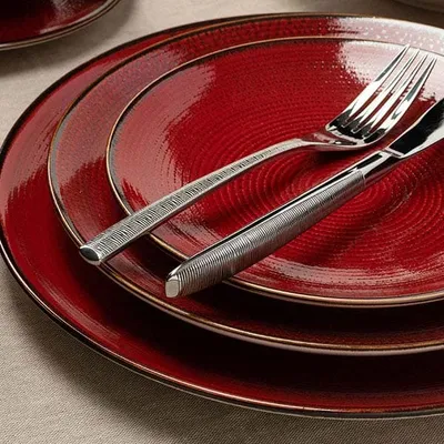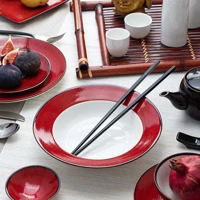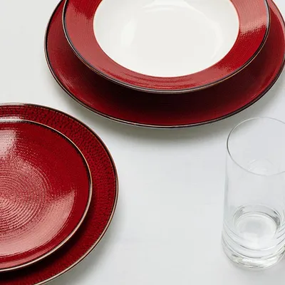 Тарелка «Джаспер» мелкая фарфор D=226,H=25мм белый,красный